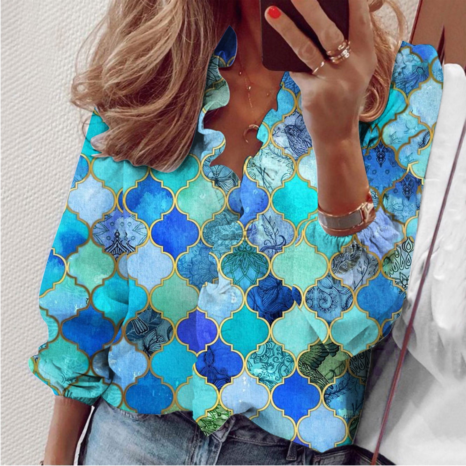 Yotami Womens Sweatershirts Casual Full Sleeve V Neck Tops Loose Shirts Blouse Printing Tops Trendy Sky Blue 2xl Walmart Com